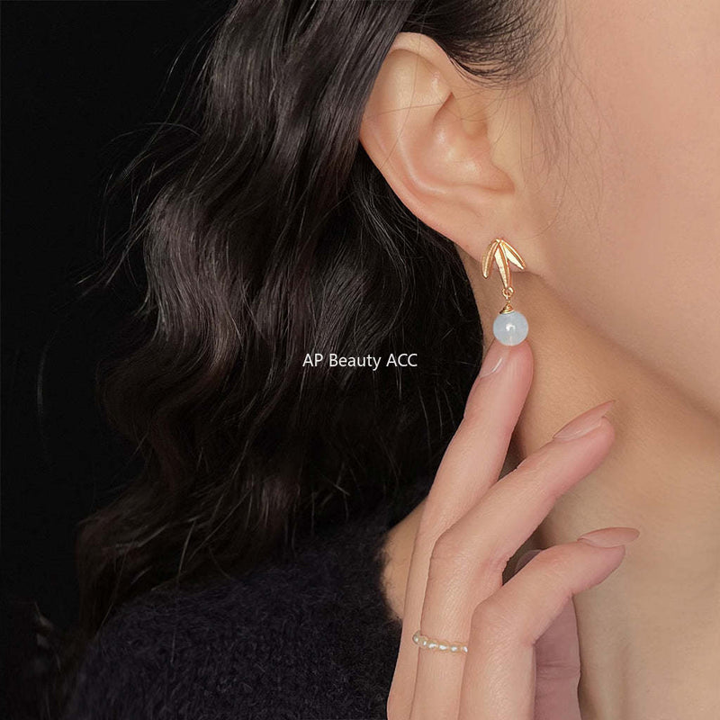 C관 - 잎 디자인 무광 핸드메이드 은침 귀걸이 [5593] 25.03-3
