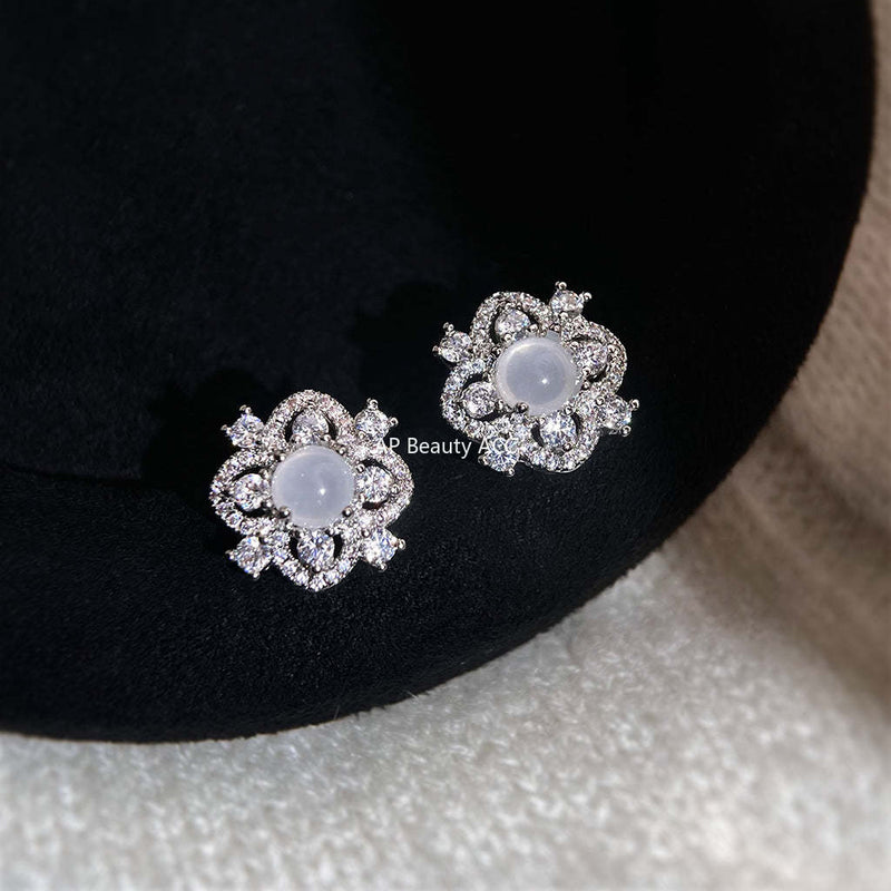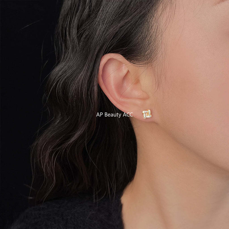 C관 - 큐빅 클로버 디자인 925 은침 귀걸이 [5718] 25.03-3