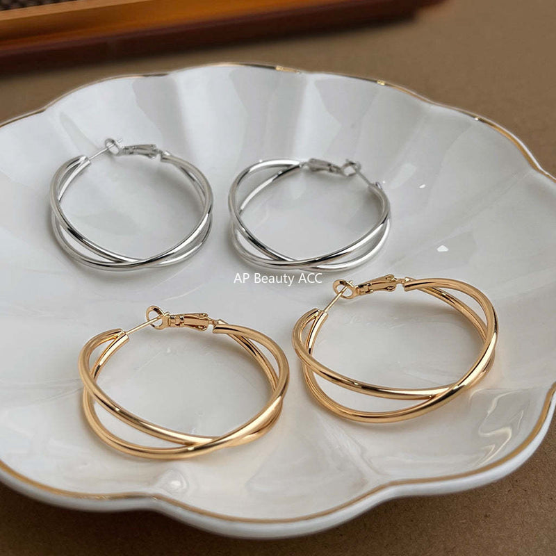 C관 - 14K 도금 트위스트 링 디자인 귀걸이 [5723-5724] 25.03-3