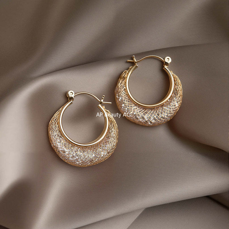 C관 - 14K 도금 망사 큐빅 디자인 링 귀걸이 [5739] 25.03-3