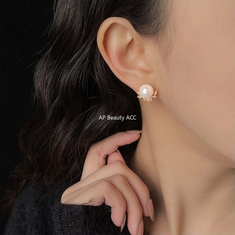 C관 - 큐빅 진주 14K 도금 925 은침 귀걸이 [5688] 25.03-2