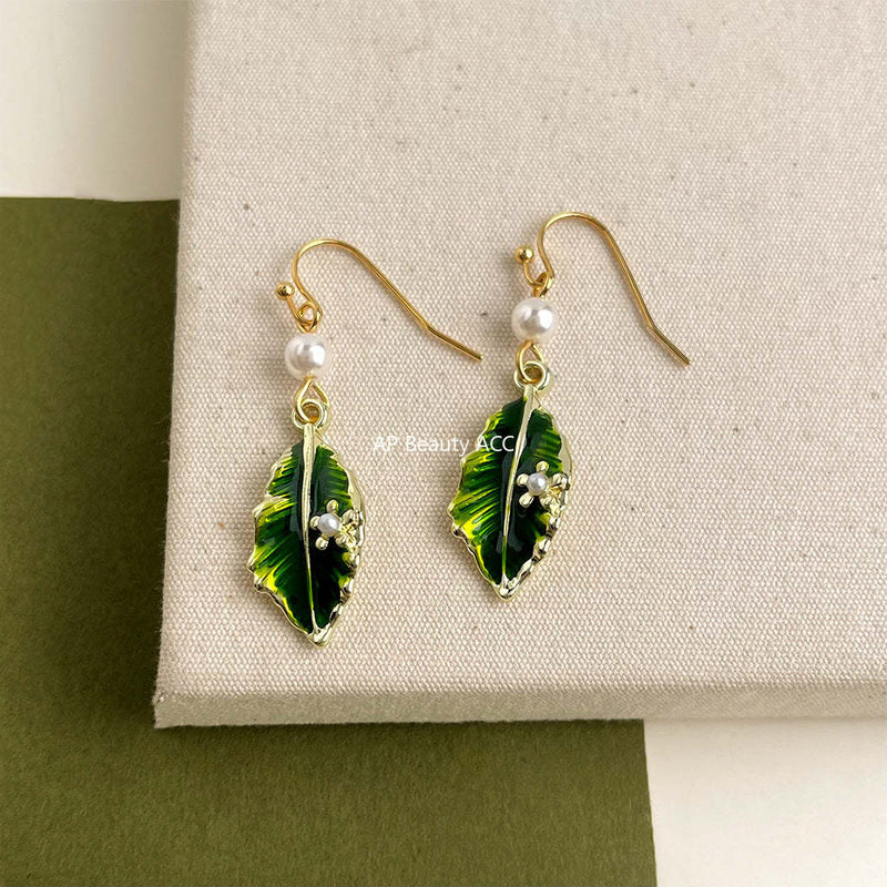 C관 - 에나멜 코팅 나뭇잎 디자인 핸드메이드 후크형 귀걸이 [5700] 25.03-2