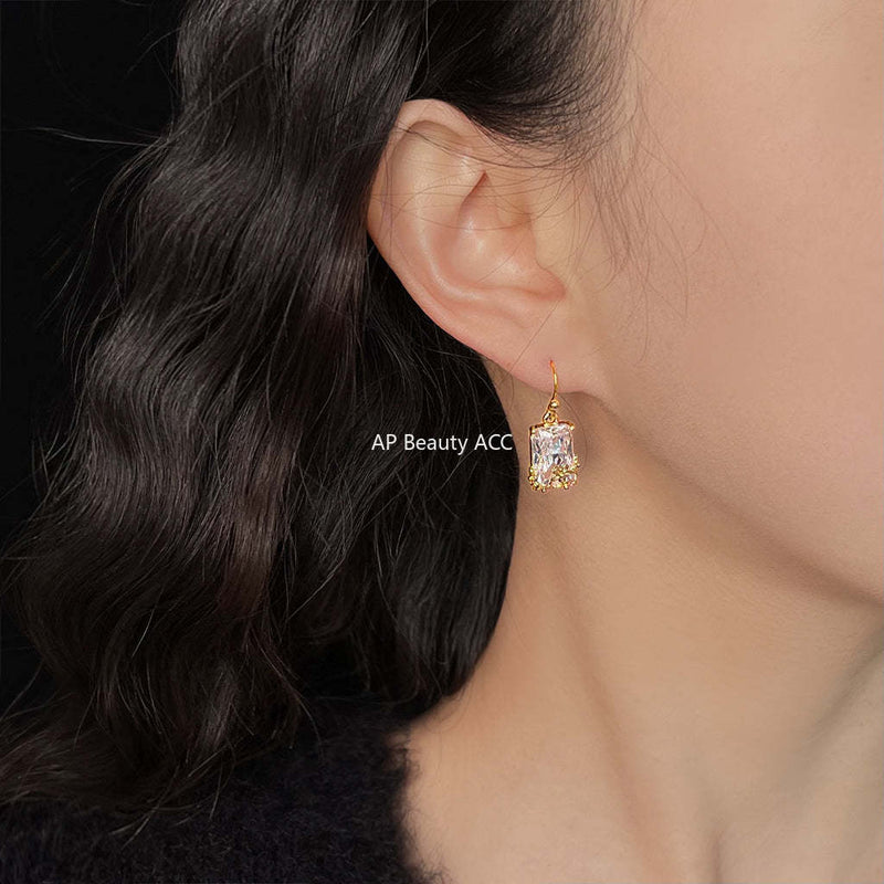 C관 - 스퀘어 큐빅 14K 도금 후크형 귀걸이 [5572] 25.03-2
