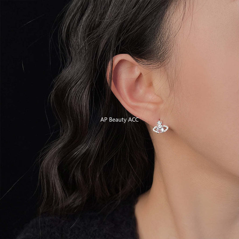 C관 - 큐빅 행성 디자인 큐빅 미니 데일리 은침 귀걸이 [5675] 25.03-1