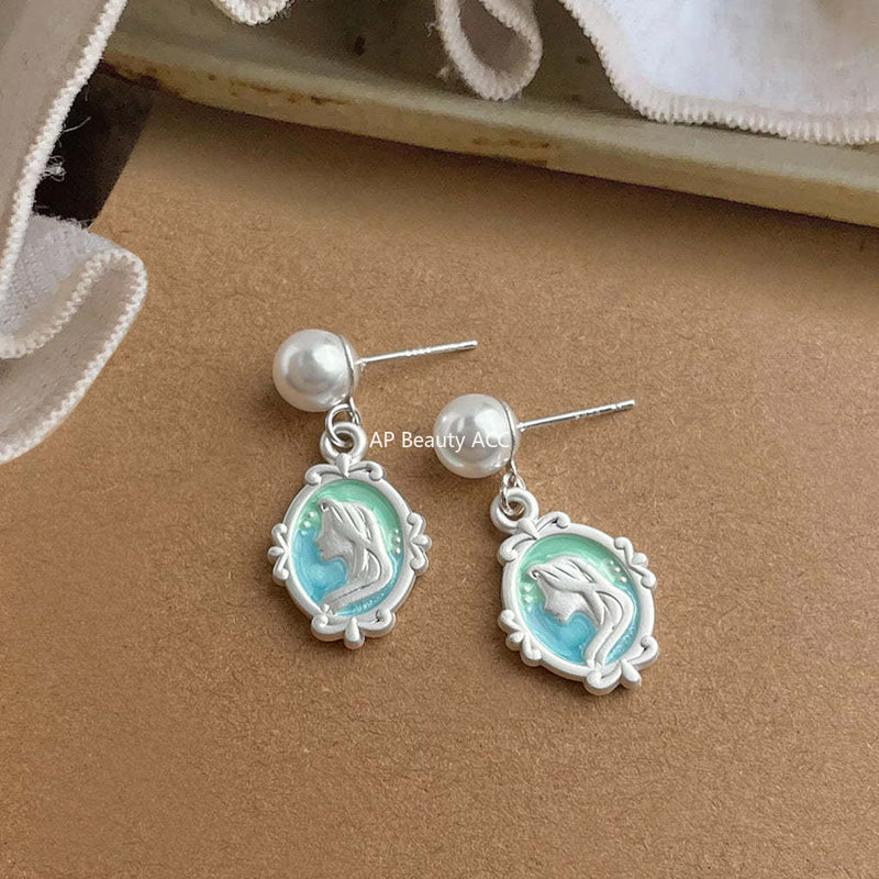 C관 - 민트 그린 타원형 초상화 진주 은침 귀걸이 [5574] 25.02-3
