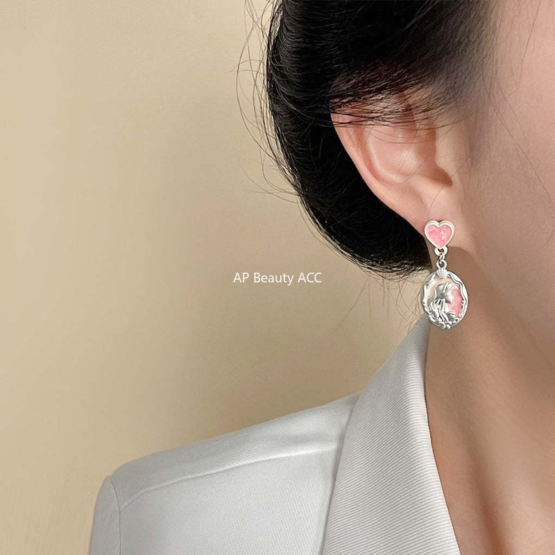 C관 - 핑크 컬러 오일코팅 미인 초상화 귀걸이 [5575] 25.02-3