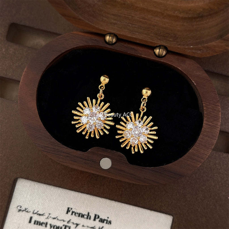 C관 - 14K 도금 해바라기 큐빅 은침 귀걸이 [5476] 25.02-3