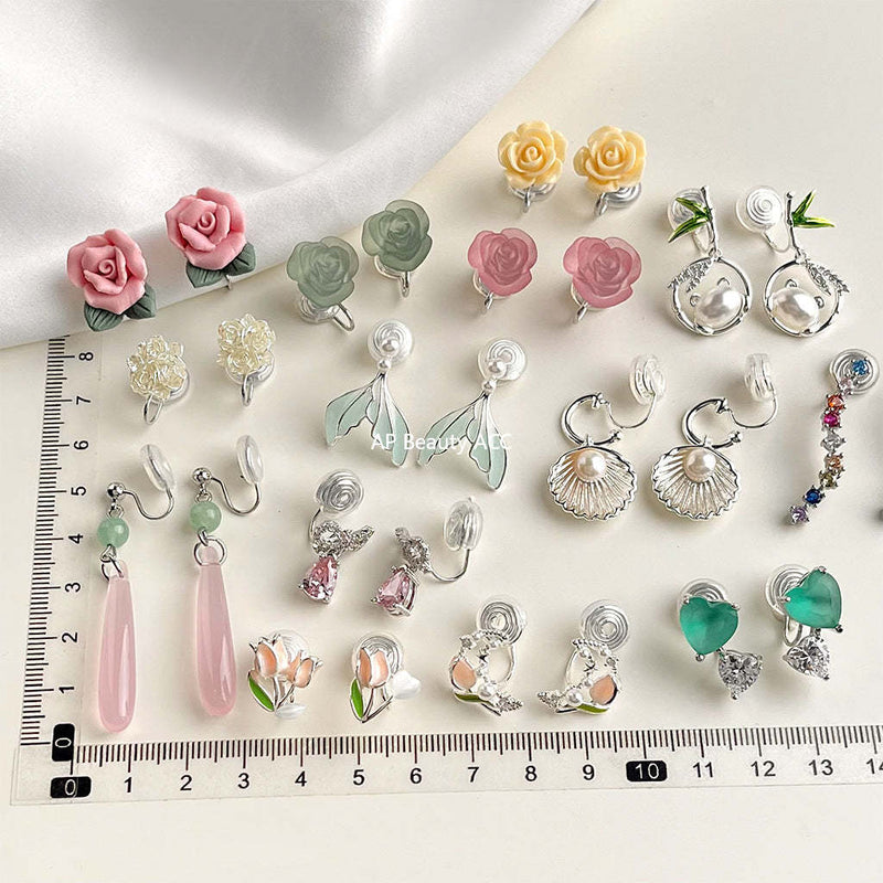 C관 - 큐빅 레진 진주 무피어싱 나선형 이어커프 귀걸이 [EJ0203F] 25.02-3