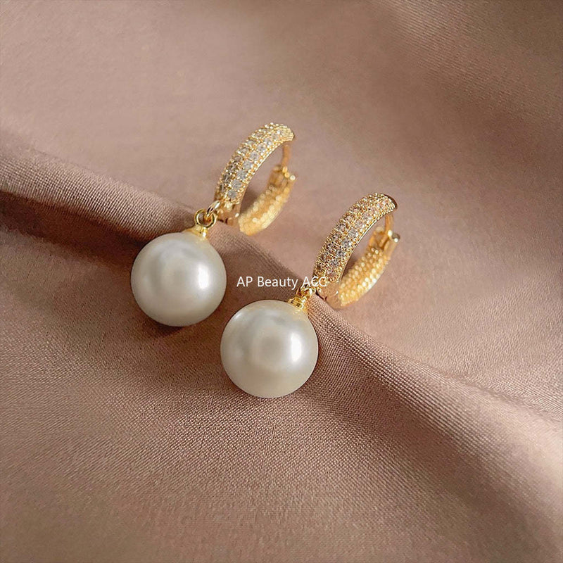 C관 - 고급스러운 14K 도금 유리 진주 귀걸이 [3593] 24.01-4