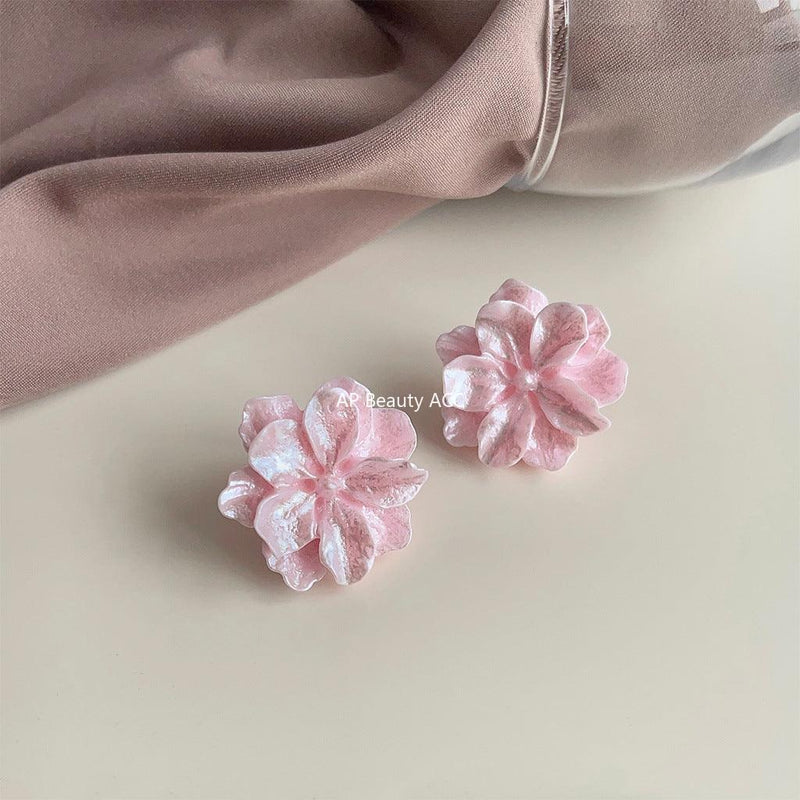 C관 - 핑크 소녀 감성 레진 플라워 디자인 은침 귀걸이 [3633] 24.03-4