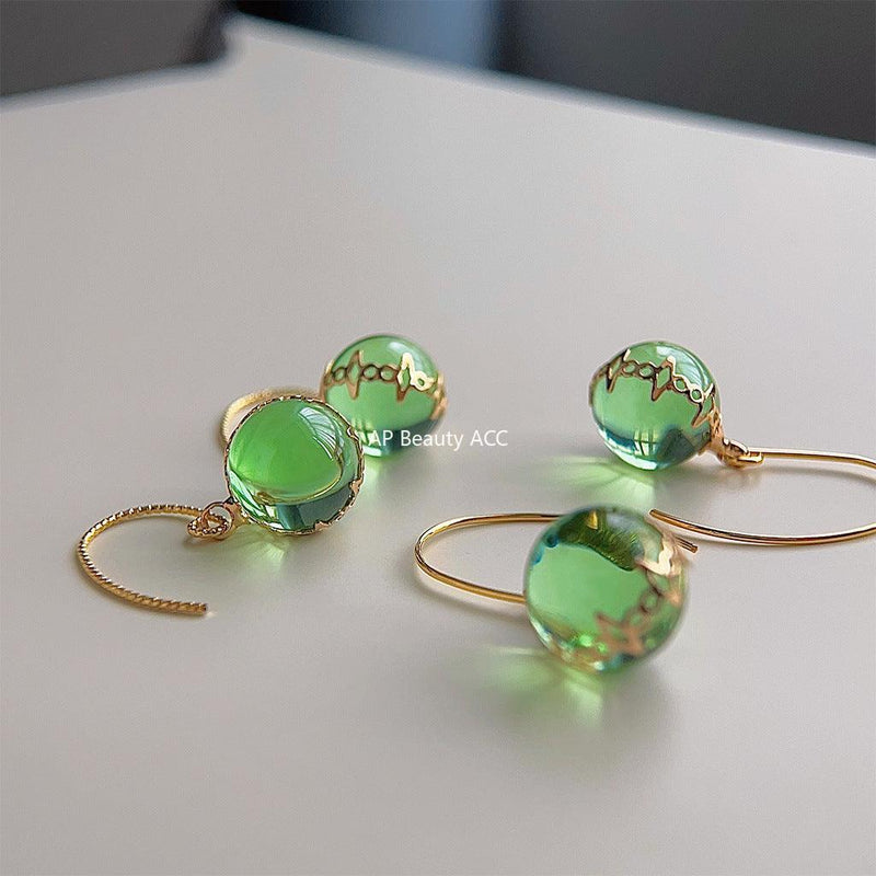 C관 - 14K 도금 투명한 초록 유리 크리스탈 구슬 귀걸이 [3679 3717] 24.03-4