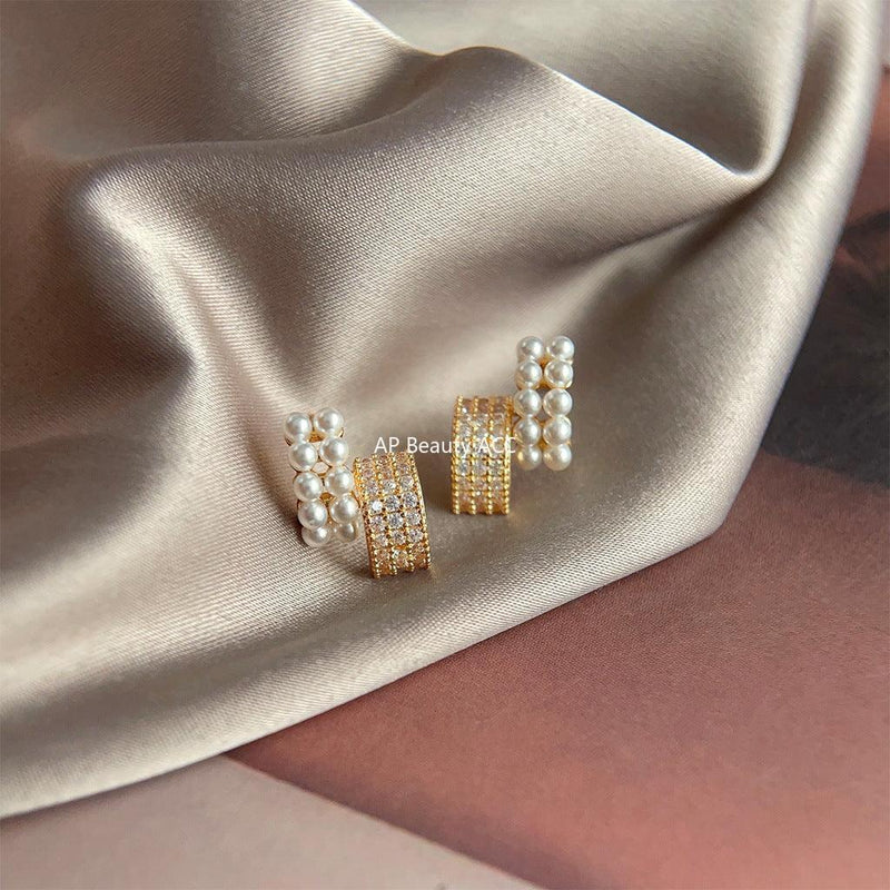 C관 - 미니 큐빅 장식 고급스러운 14K 도금 기하학적 은침 귀걸이 [3637] 24.03-4