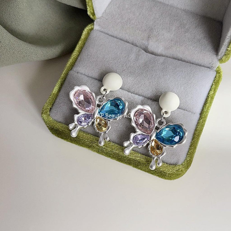 C관 - 봄 여름 유리 크리스탈 컬러 버터플라이 은침 귀걸이 [3653] 24.03-4