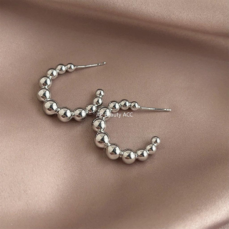C관 - 차분한 스타일 C자형 고급 원형 귀걸이 은침 귀걸이 [3273-3274] 24.03-5