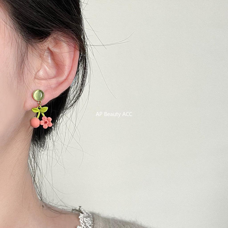 C관 - 봄여름 내추럴 스타일 투명한 녹색 꽃 귀걸이 휴양지 느낌 은침 귀걸이 [1094] 24.03-5
