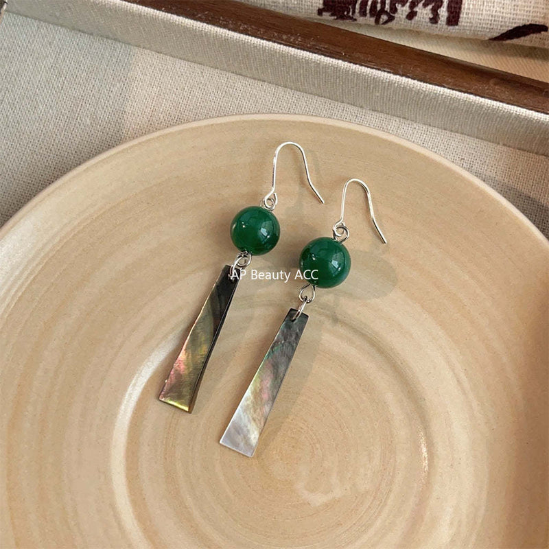 C관 - 천연석 그린 마노 핸드메이드 기하학 귀걸이 [3760] 24.04-1