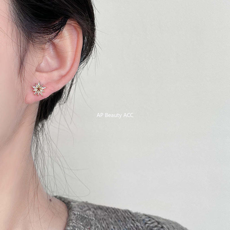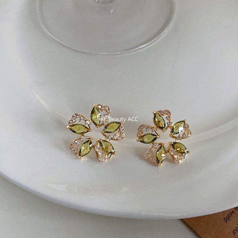 C관 - 올리브 그린 꽃 미니 큐빅 고급스러운 14K 도금 은침 귀걸이 [3766] 24.04-1