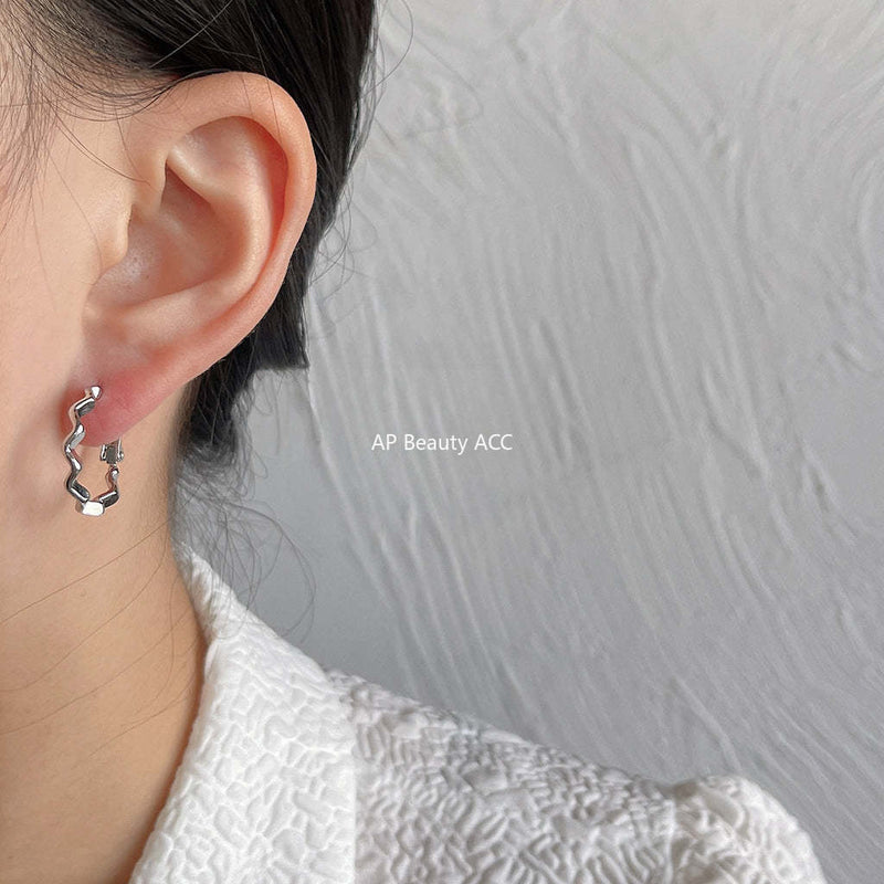C관 - 간결한 금속 물결 은침 링 귀걸이 [1342] 24.04-2