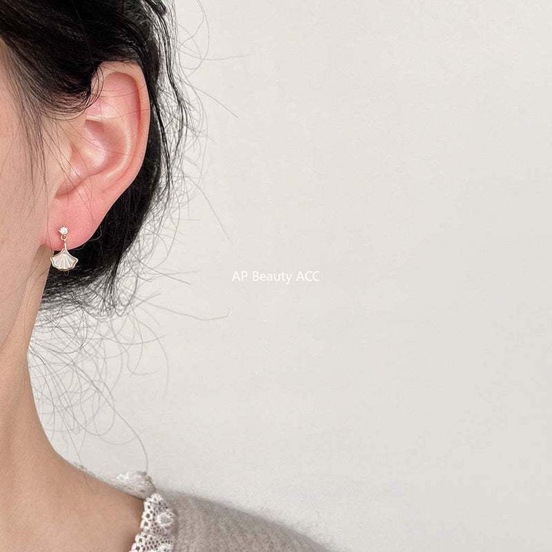 C관 - 은침 은행잎 디자인 미니 14K 도금 귀걸이 [3574] 24.04-2
