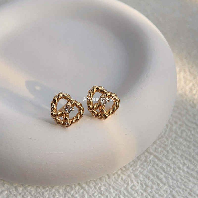 C관 - 미니 큐빅 간결한 하트 14K 도금 은침 귀걸이 [3694] 24.04-1