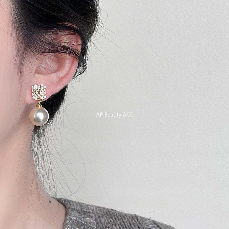 C관 - 고급스러운 미니 큐빅 글라스 진주 은침 귀걸이 [3721-3722] 24.04-2