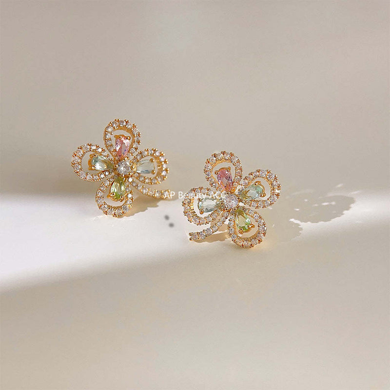 C관 - 업그레이드 18K 도금 고급스러운 미니 큐빅 컬러 꽃 귀걸이 [3711] 24.04-2