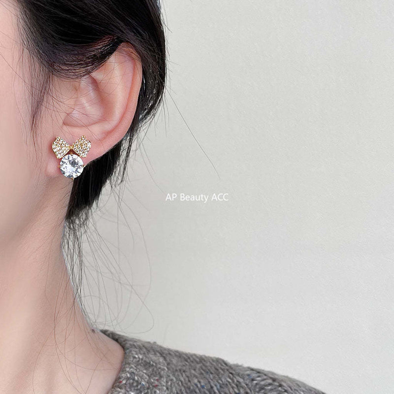 C관 - 고급스러운 큐빅 나비 리본 14K 도금 은침 귀걸이 [3727] 24.04-2