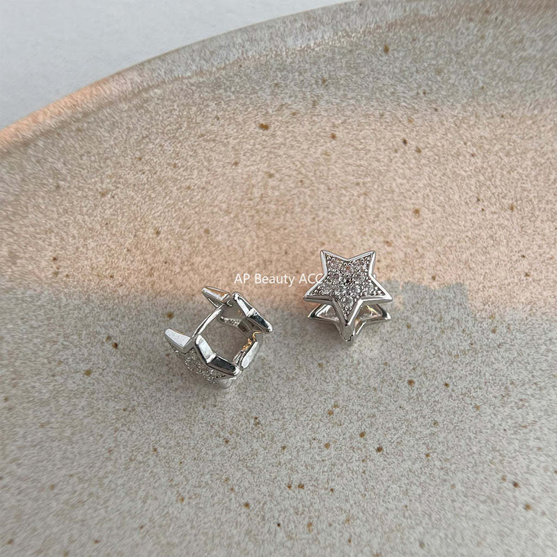 C관 - 간결한 디자인 미니 큐빅 오각별 은침 귀걸이 [2674] 24.04-3