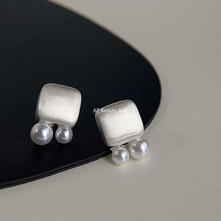 C관 - 데일리 백금 도금 브러시 금속 느낌 기하학적 진주 귀걸이 [2682] 24.04-3
