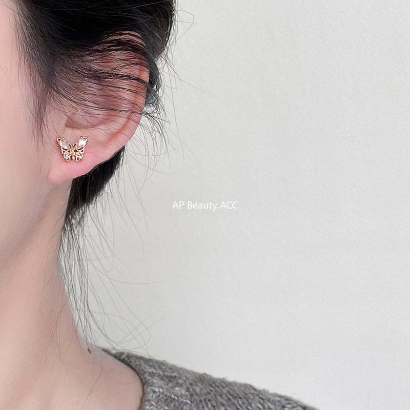 C관 - 미니 큐빅 로즈 골드 도금 나비 귀걸이 숲 속 스타일 귀걸이 [3846] 24.04-2