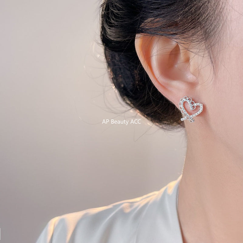C관 - 미니 큐빅 925 은침 하트 레이스 귀걸이 [7067] 25.11-2
