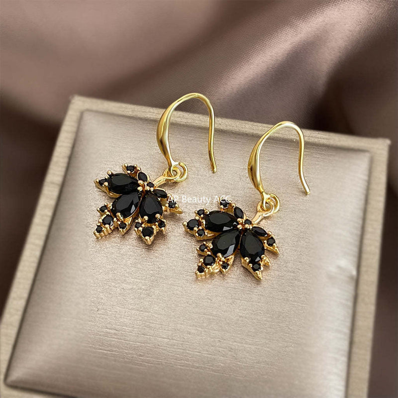 C관 - 925 은침 14K 도금 블랙 큐빅 잎 디자인 귀걸이 [6966] 25.10-4