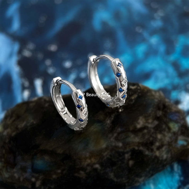 C관 - 블루 큐빅 별 디자인 백금 도금 링 귀걸이 [6946] 25.10-4