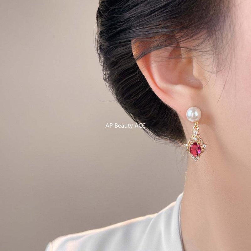 C관 - 핸드메이드 큐빅 글라스 진주 드롭 925 은침 귀걸이 [7087] 25.11-3