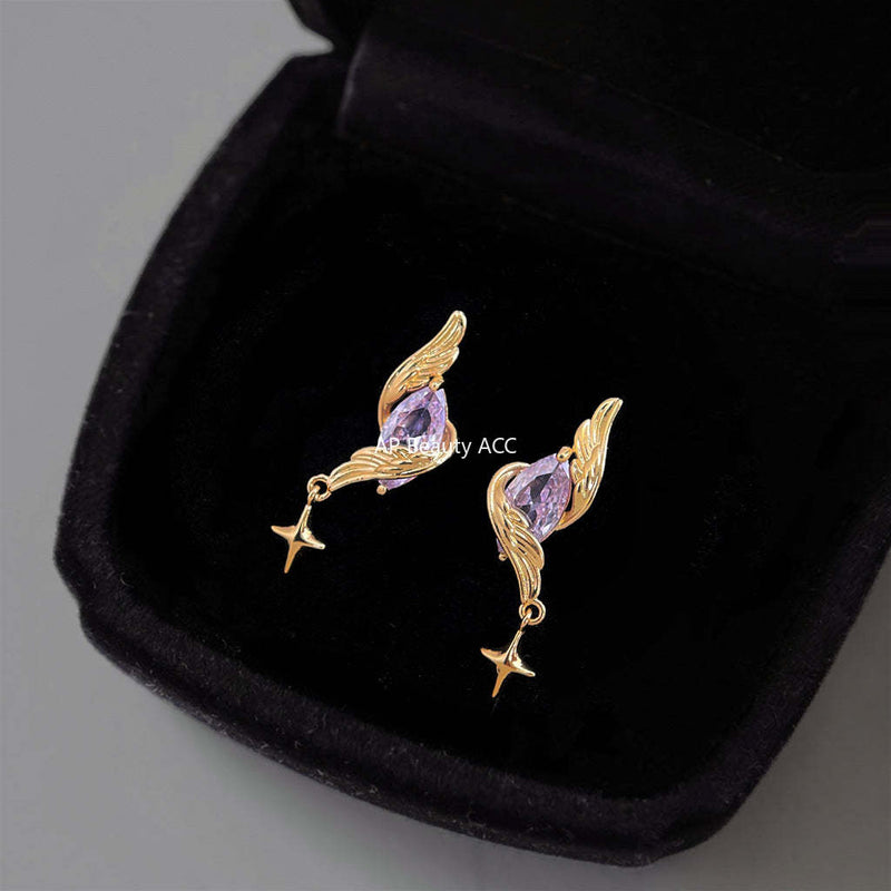 C관 - 925 은침 핸드메이드 큐빅 날개 별 디자인 귀걸이 [6918] 25.10-4
