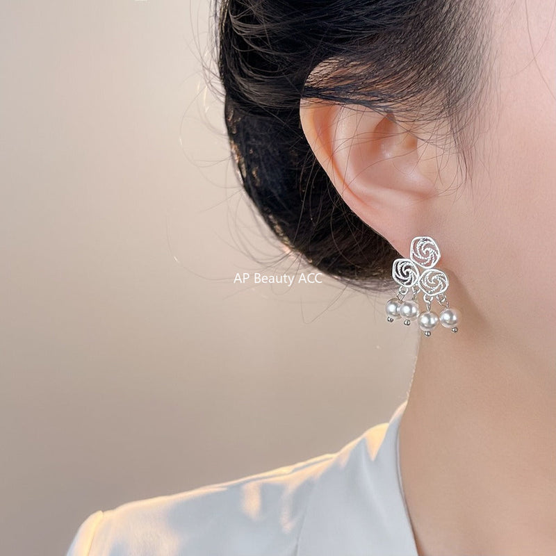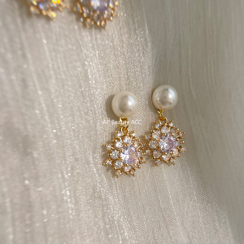 C관 - 925 은침 눈꽃 큐빅 진주 핸드메이드 귀걸이 [7078] 25.11-2