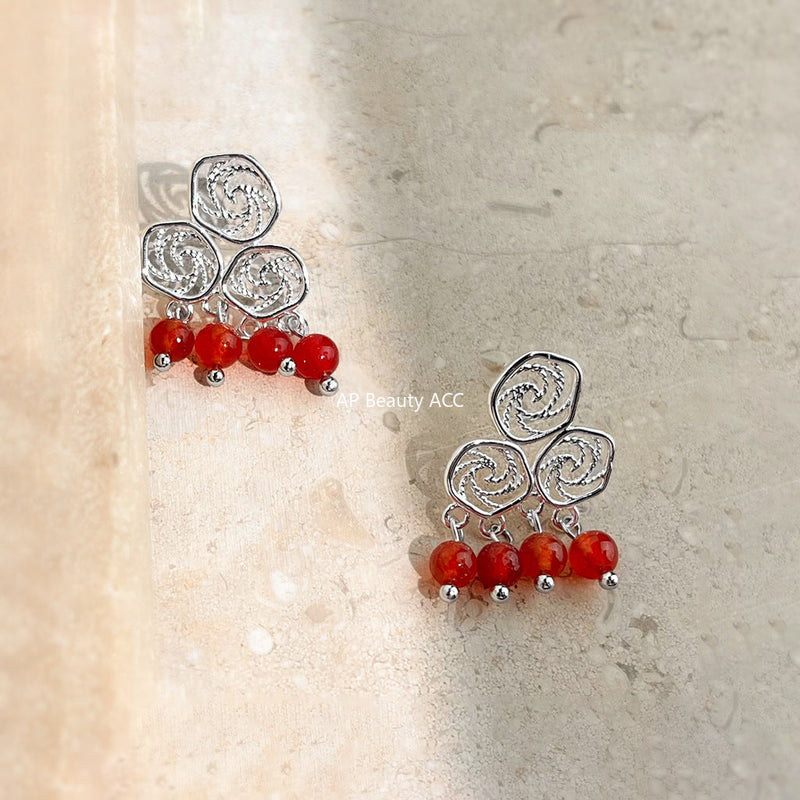 C관 - 925 은침 핸드메이드 구름 디자인 홍마노 귀걸이 [7057] 25.11-2