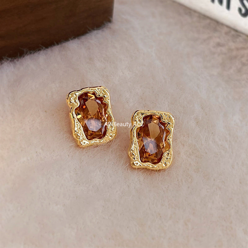 C관 - 925 은침 비정형 직사각형 브라운 큐빅 귀걸이 [7074] 25.11-2