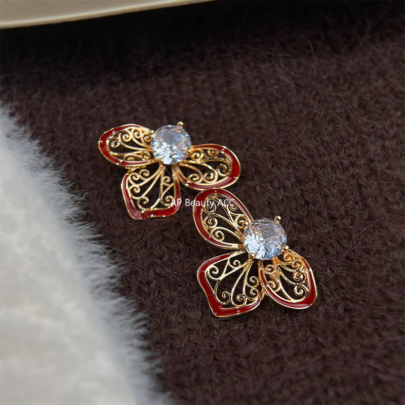 C관 - 미니 큐빅 925 은침 핸드페인팅 플라워 귀걸이 [7071] 25.11-2