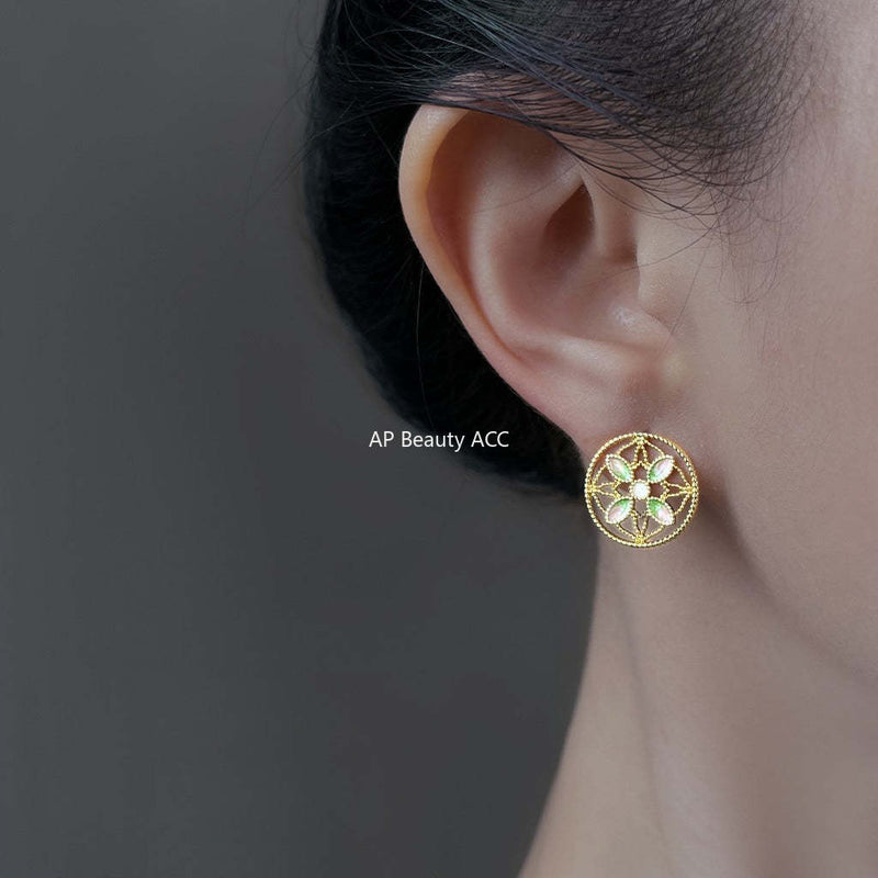 C관 - 925 은침 14K 도금 핸드페인팅 큐빅 진주 플라워 귀걸이 [6961] 25.10-4