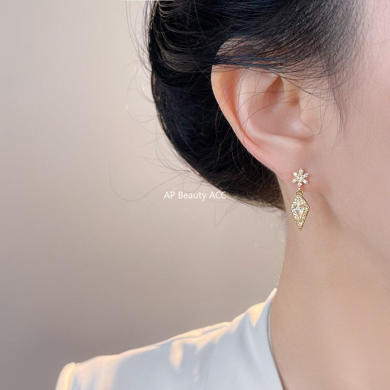 C관 - 눈꽃 다이아몬드 모양 미니 큐빅 925 은침 귀걸이 [7079] 25.11-2