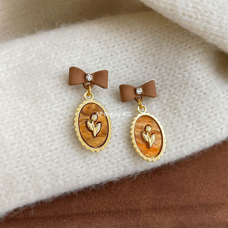 C관 - 925 은침 브라운 에나멜 리본 큐빅 귀걸이 [7024] 25.11-1