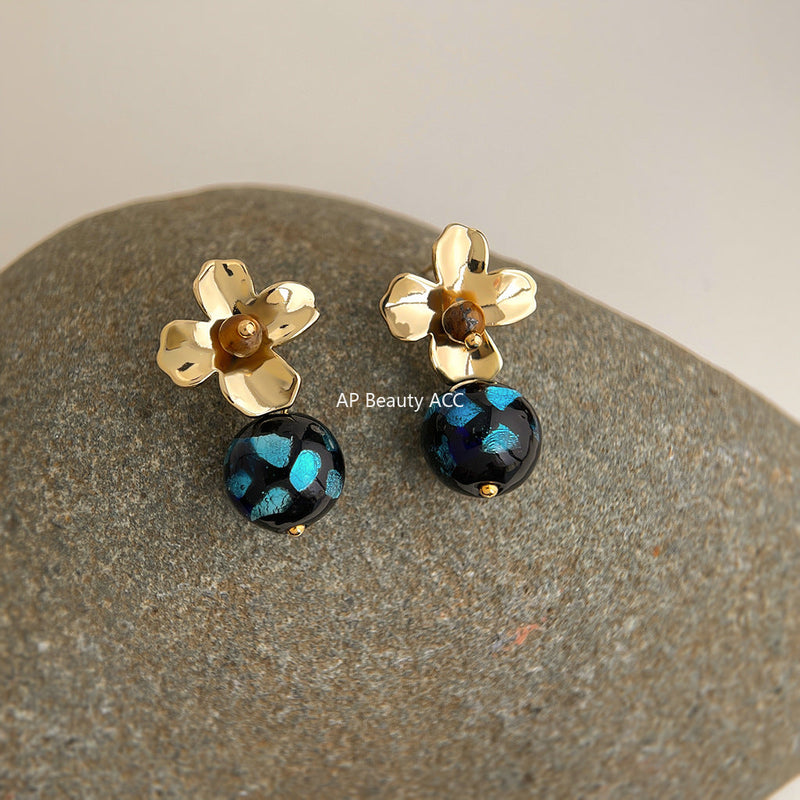 C관 - 925 은침 플라워 핸드메이드 호안석 글라스 귀걸이 [6926] 25.10-3