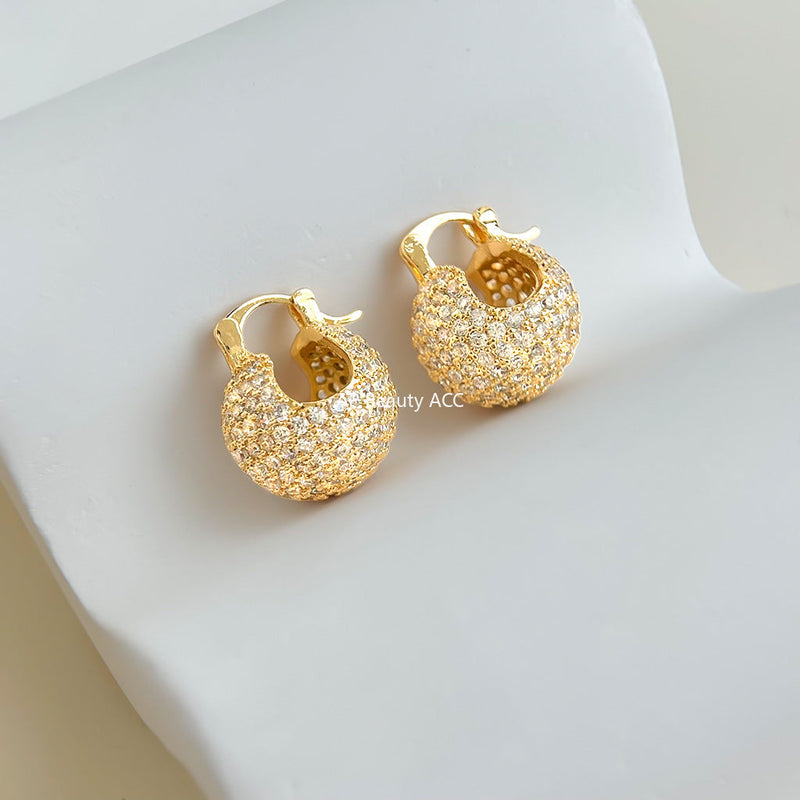 C관 - 18K 골드 도금 풀 큐빅 원형 귀걸이 [7059] 25.11-2