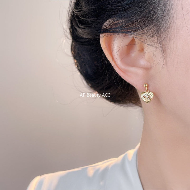C관 - 925 은침 핸드메이드 미니 큐빅 눈 하트 디자인 귀걸이 [7082] 25.11-2
