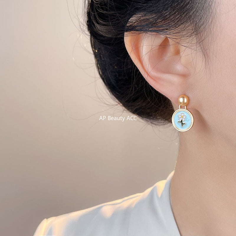 C관 - 925 은침 핸드페인팅 플라워 원형 무광 귀걸이 [7083] 25.11-2