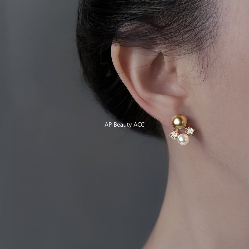 C관 - 925 은침 브라운 컬러 진주 큐빅 귀걸이 [6925] 25.10-3