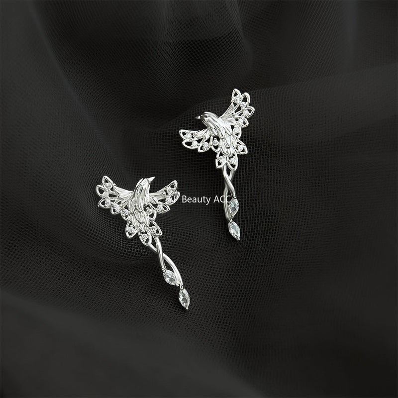 C관 - 925 은침 미니 큐빅 봉황 디자인 귀걸이 [6854] 25.10-3