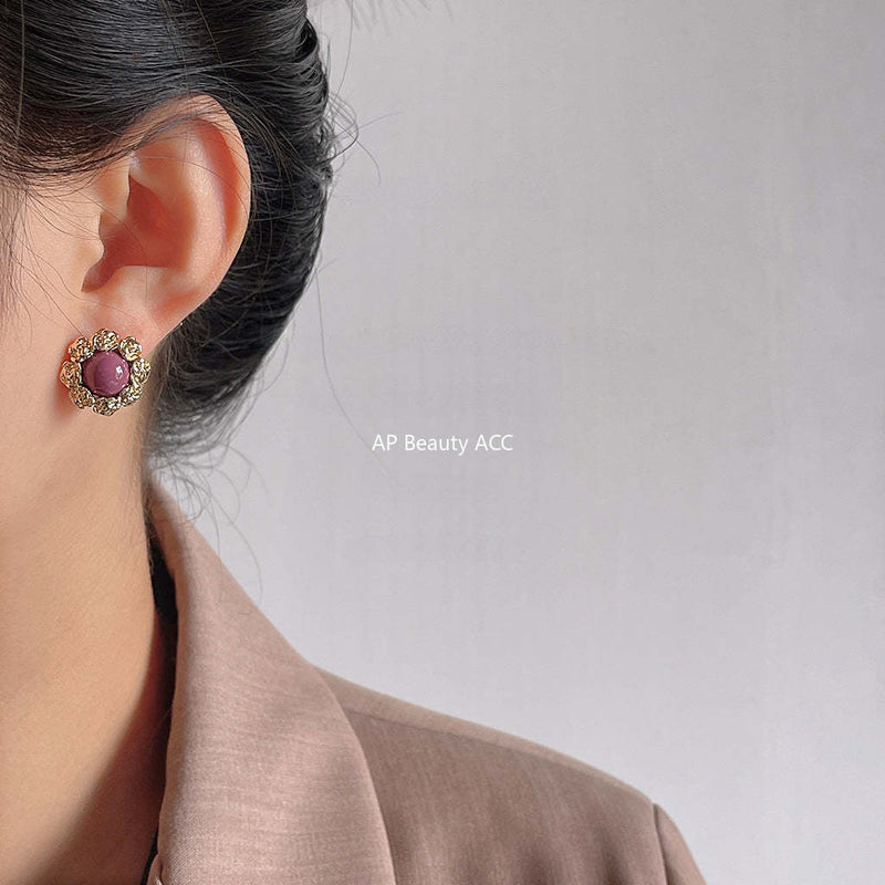 C관 - 와인 레드 물방울 레진 은침 귀걸이 [A475] 24.09-3