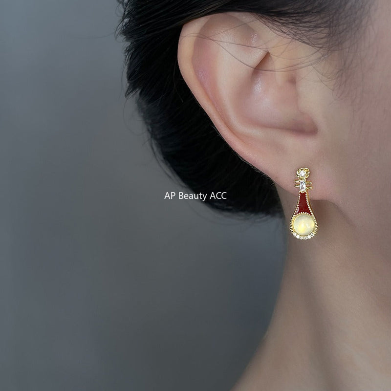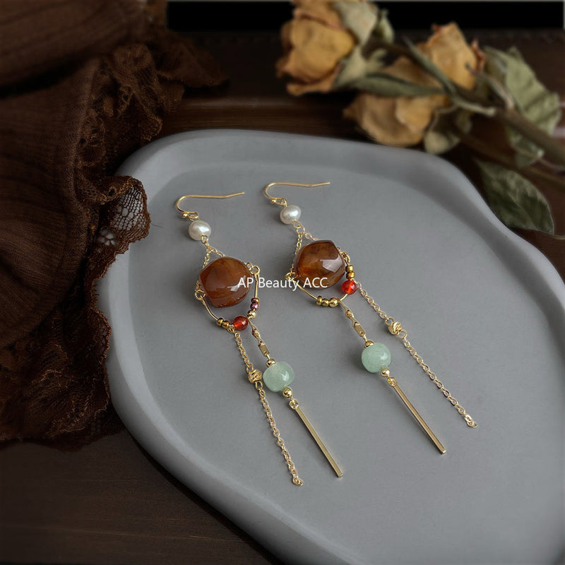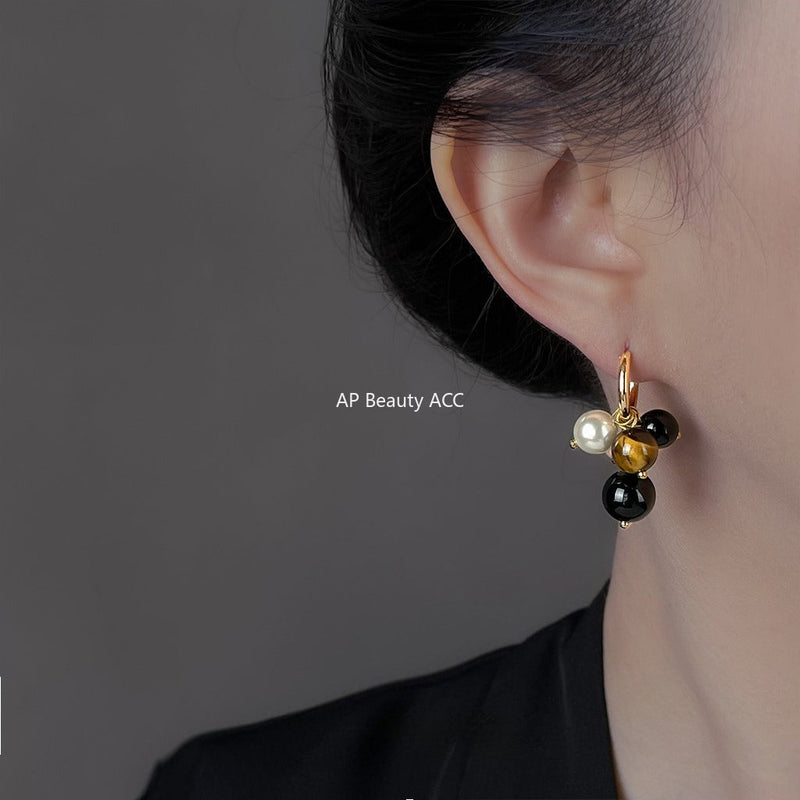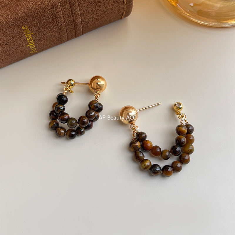 C관 - 핸드메이드 천연 호안석 더블 레이어 귀걸이 [6920] 25.10-3